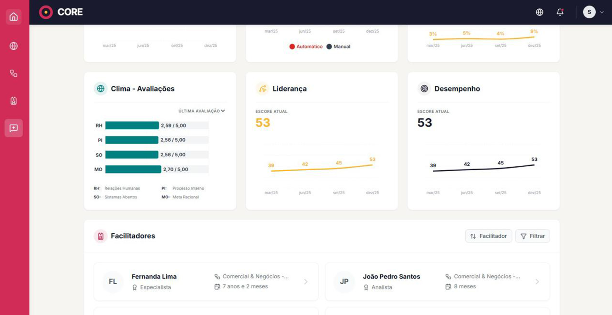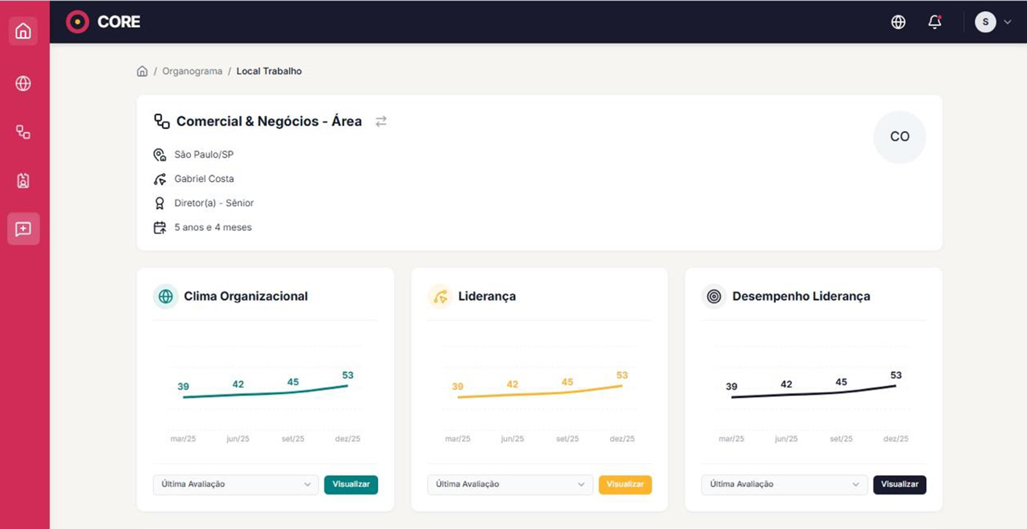 A CORE traduz comportamentos complexos em diagnósticos executivos claros. Avalie o desempenho, tenha uma estrutura viva e preveja riscos organizacionais em uma única plataforma.