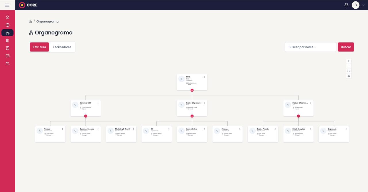 Estruturamos o organograma completo da sua empresa em até 4 horas, com todas as divisões de times, funções e hierarquias bem definidas.