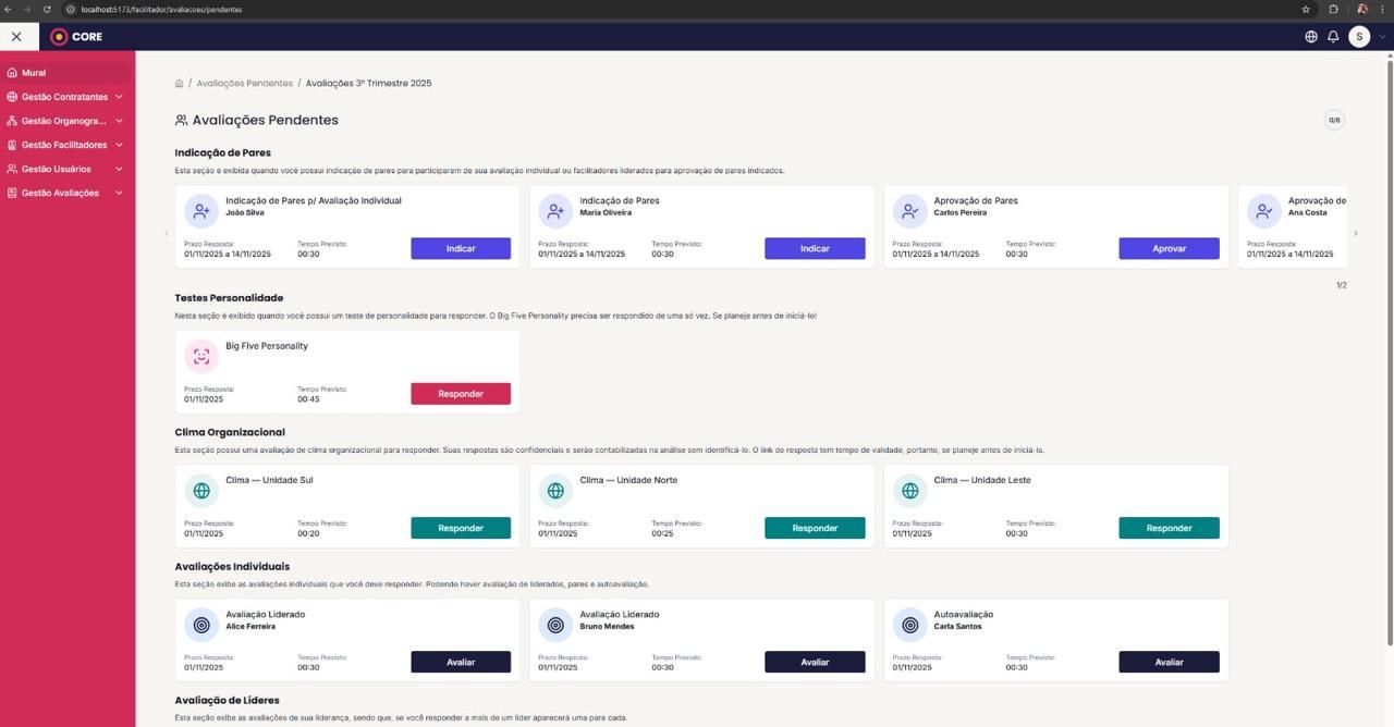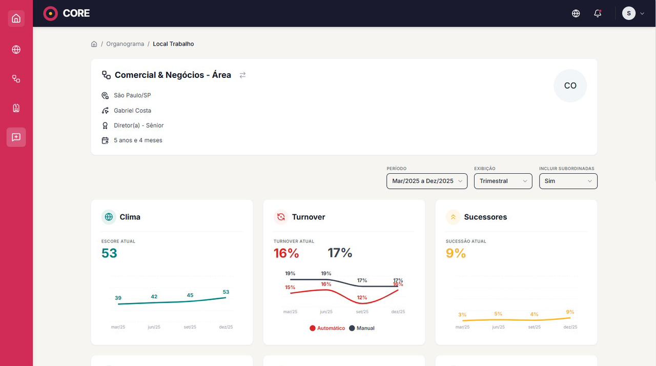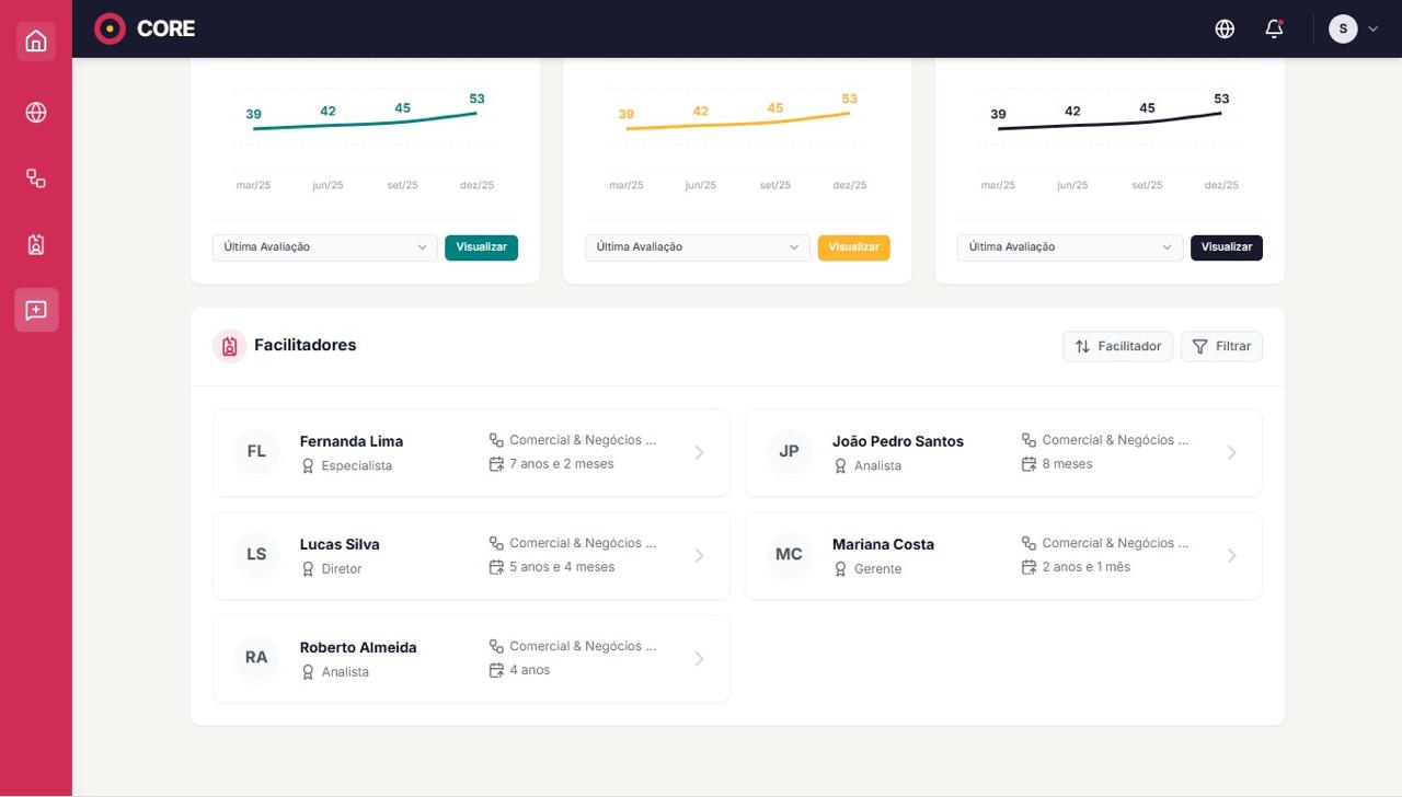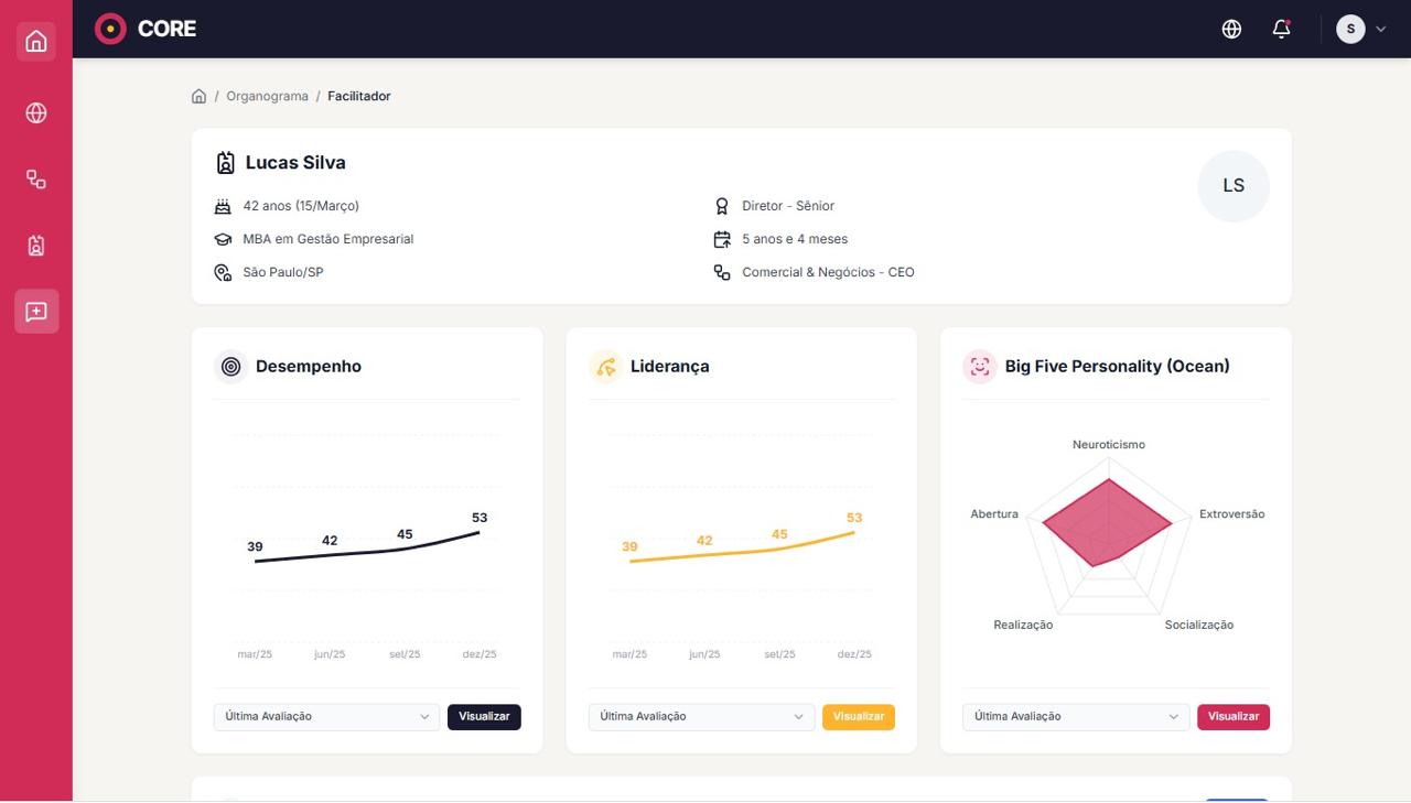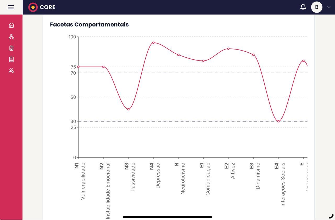 A CORE traduz comportamentos complexos em diagnósticos executivos claros. Avalie o desempenho, tenha uma estrutura viva e preveja riscos organizacionais em uma única plataforma.