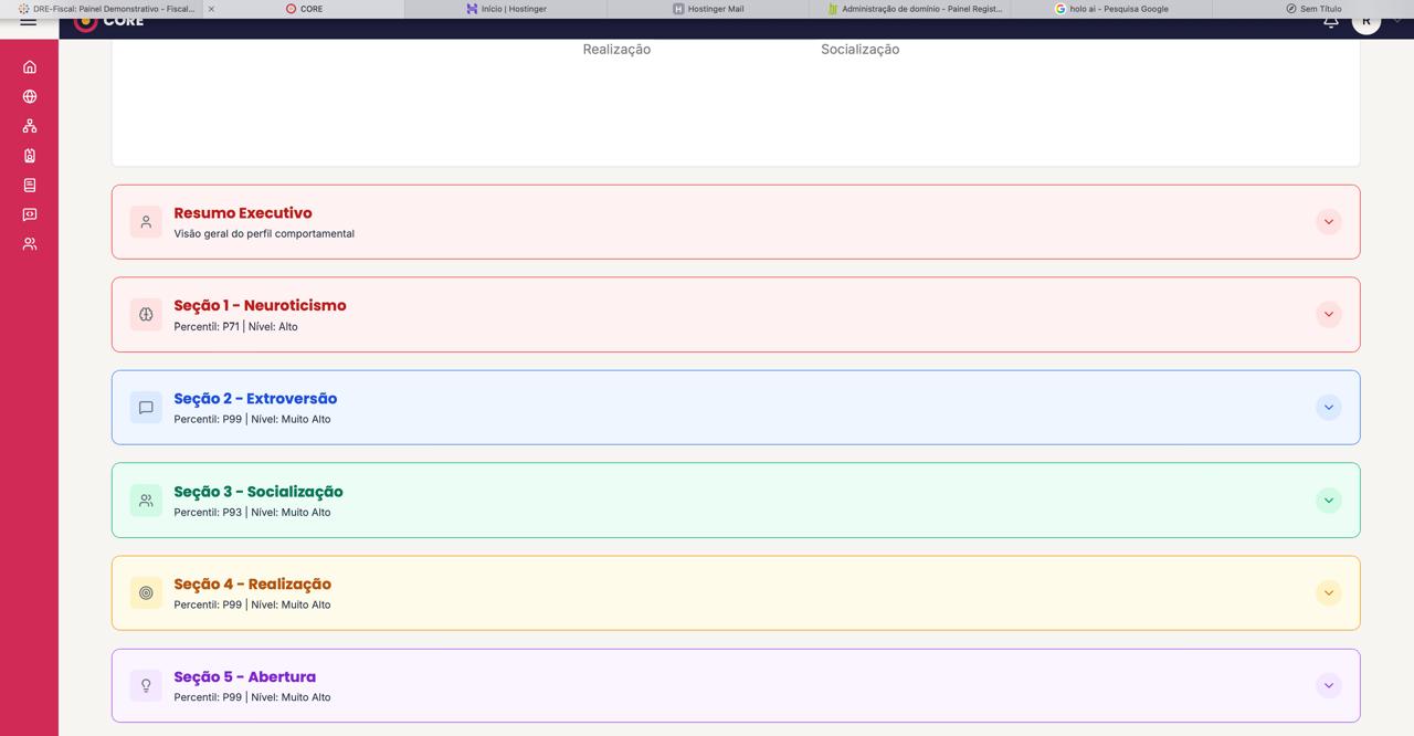 Aplicamos a metodologia OCEAN (Big Five) de Harvard para mapear traços comportamentais.