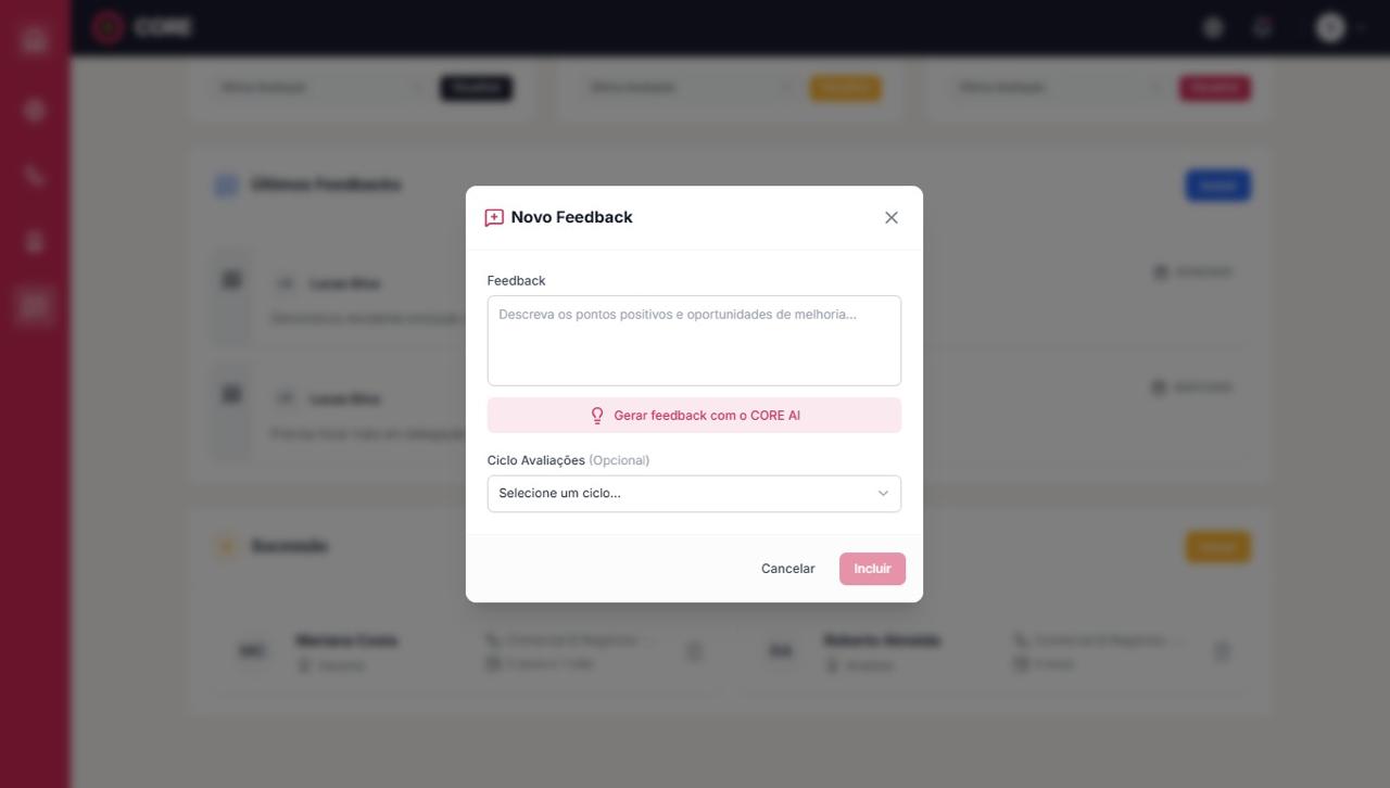 Automação 360º. O sistema gera o diagnóstico textual do impacto do comportamento, entregando o argumento pronto para o líder.